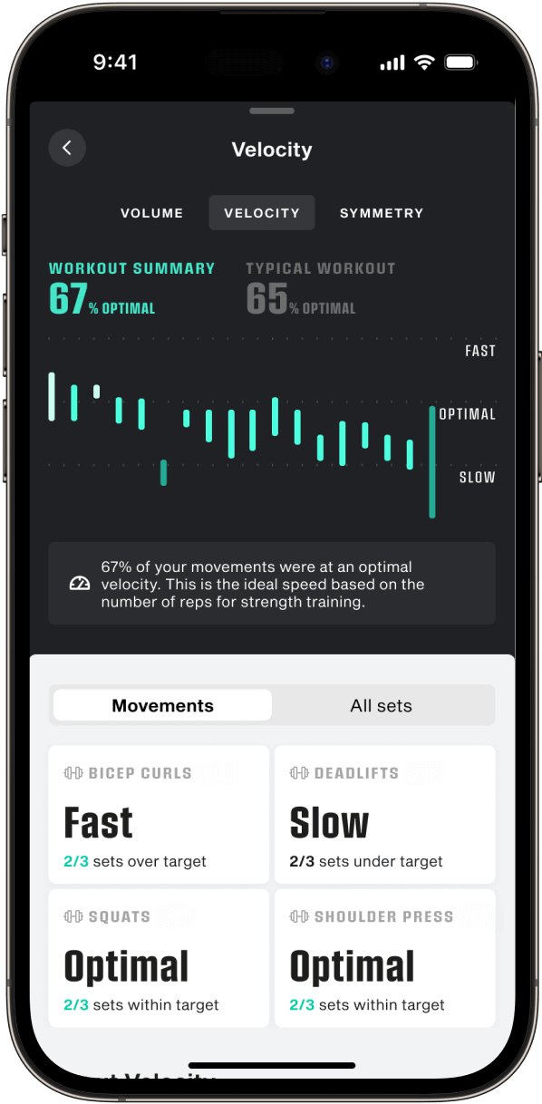 Kabata’s state-of-the-art velocity-based training (VBT) analyzes the speed of your reps to determine exactly when you should increase or decrease the weight.
